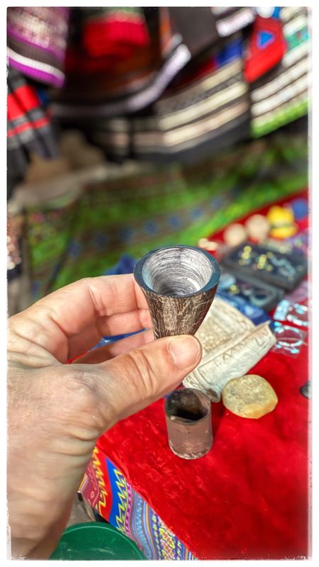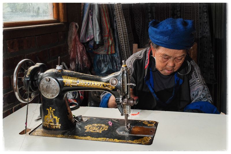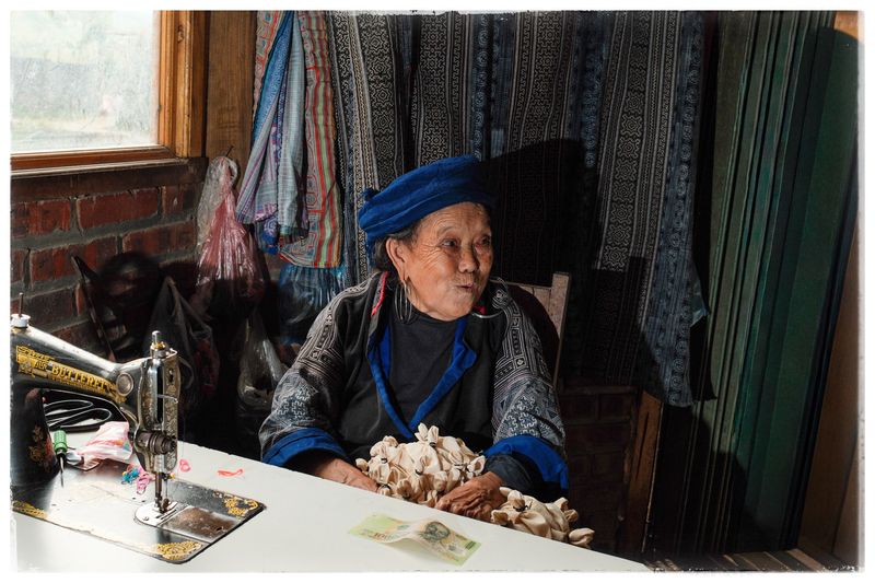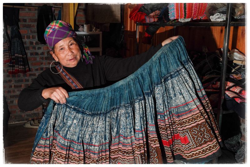 Pour renforcer cette couleur, on ajoute un peu de poudre de calcaire. À chaque nouvelle cuisson, le bleu se fait plus sombre, plus intense, jusqu’à virer au noir — la couleur que préfèrent les femmes hmong.