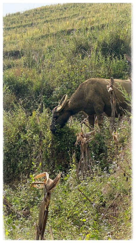 Mais en ce moment, c’est les “vacances des buffles” : les animaux sont laissés libres, à paître tranquillement dans les montagnes.