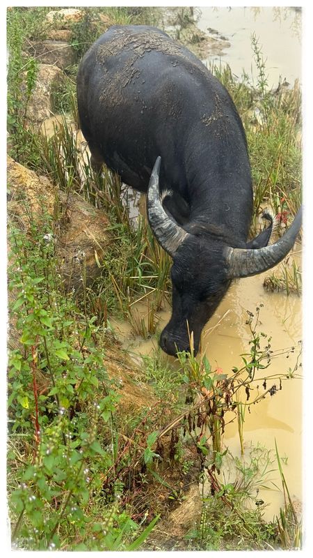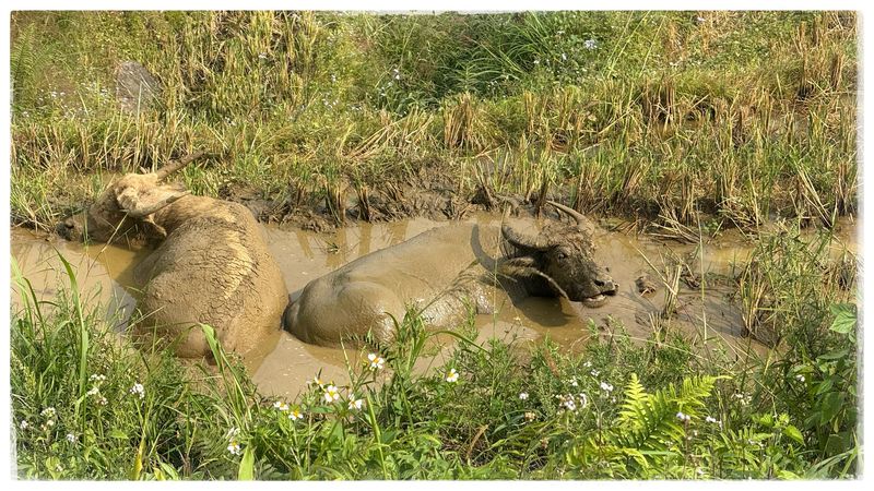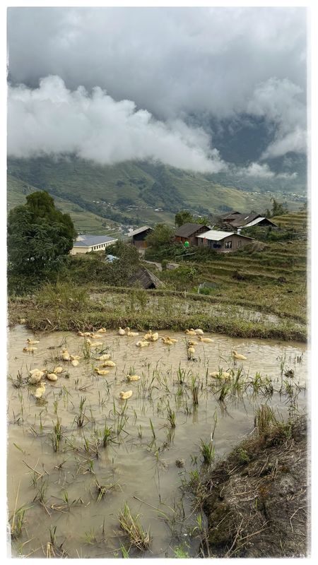 Autour, les buffles paressent, les canards s’ébrouent, les poules rappellent leurs poussins…