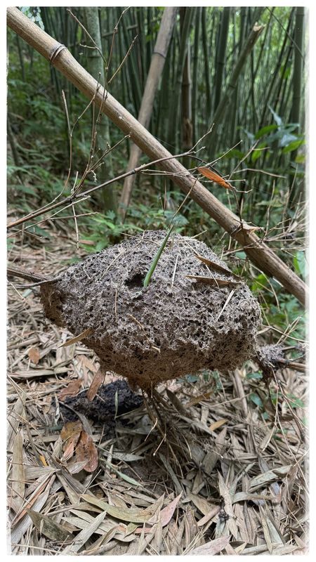 Les fourmis adorent récupérer la bouse de buffle pour construire leurs nids tout en haut des bambous.