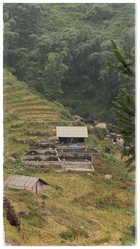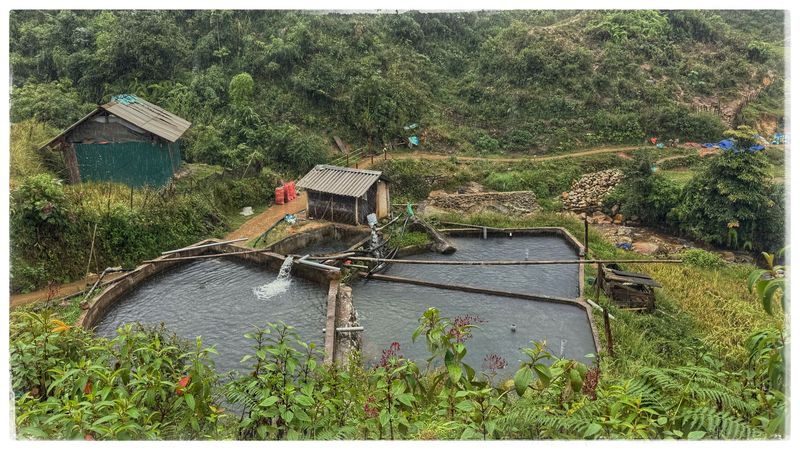 C’est elle qui nourrit les bassins où nagent les esturgeons et les saumons — fierté des villageois, promesse de beaux repas.