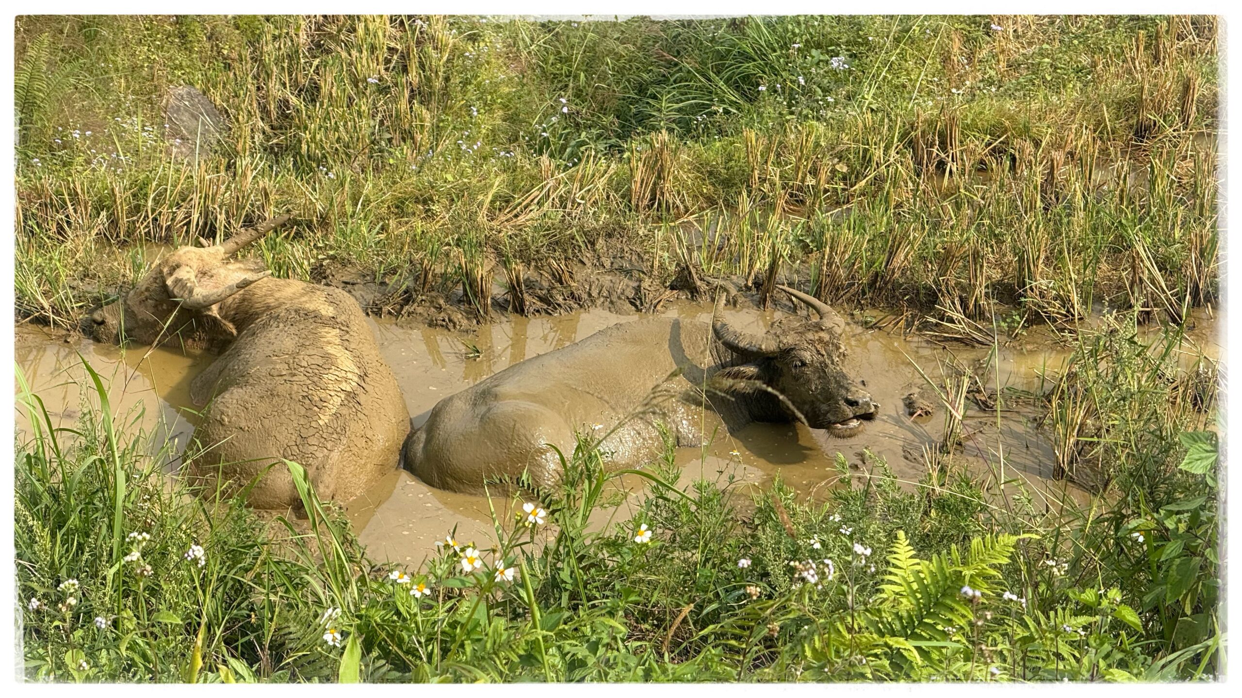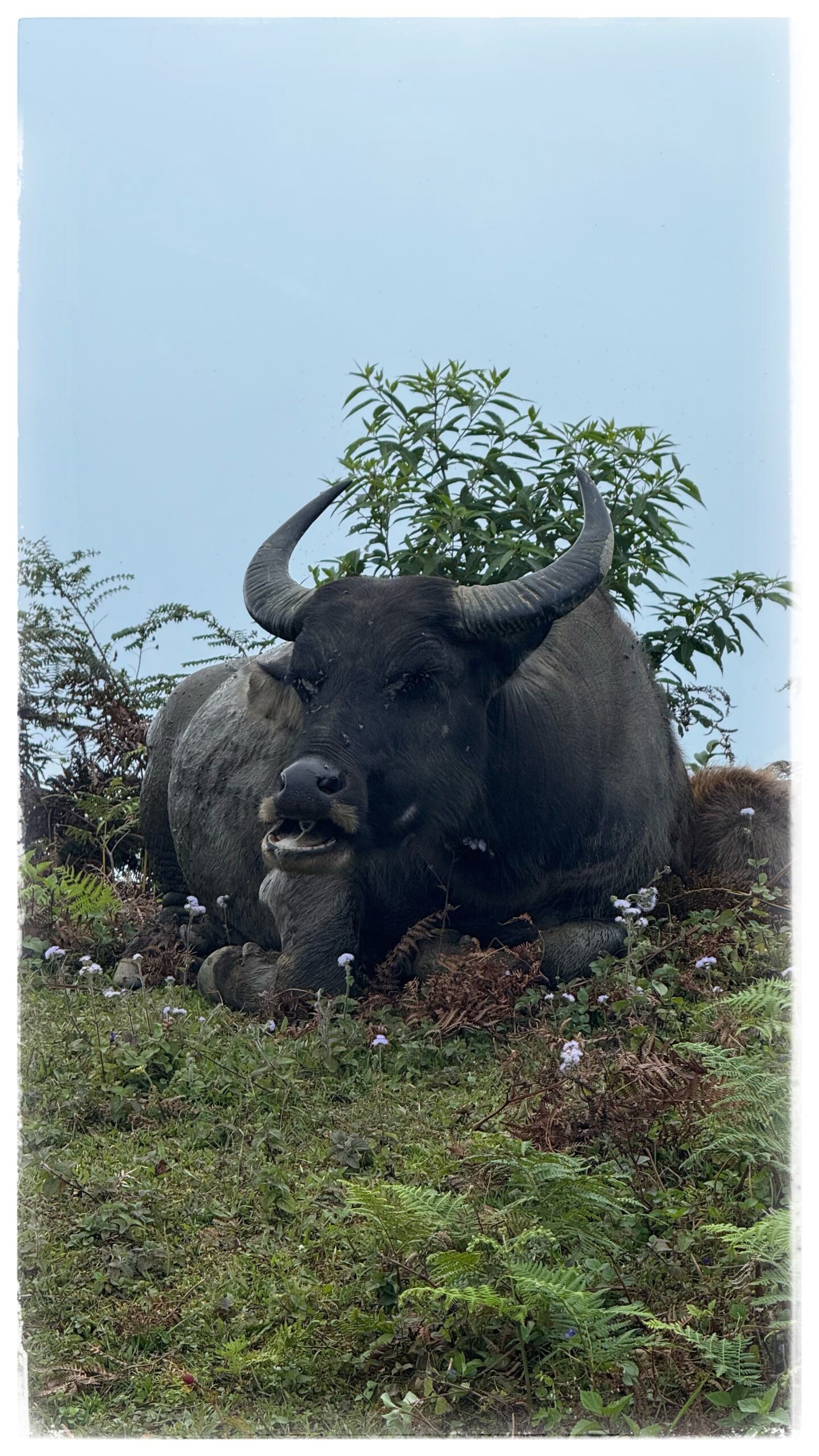 Mais en ce moment, c’est les “vacances des buffles” : les animaux sont laissés libres, à paître tranquillement dans les montagnes.