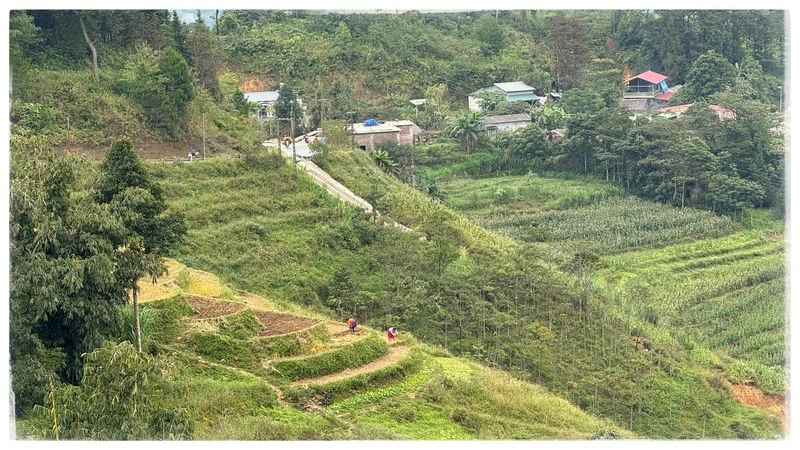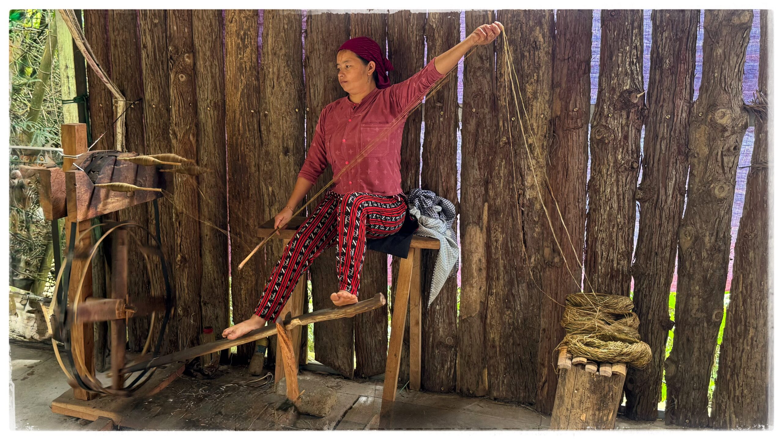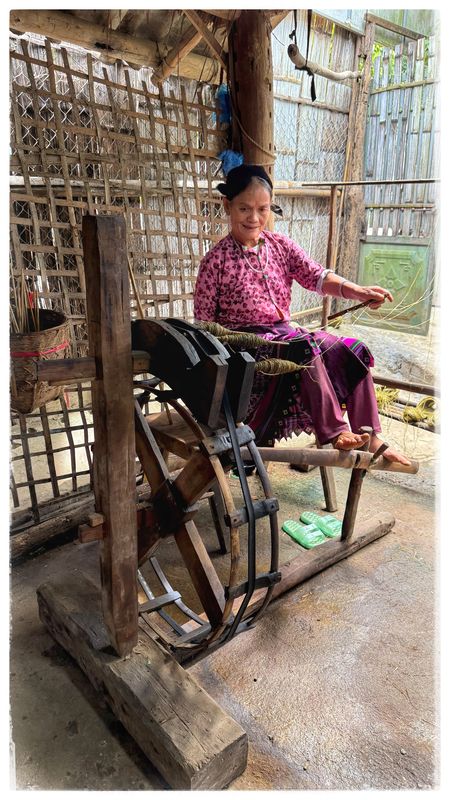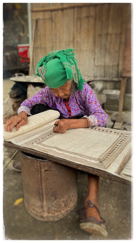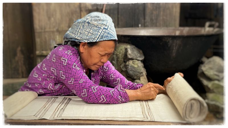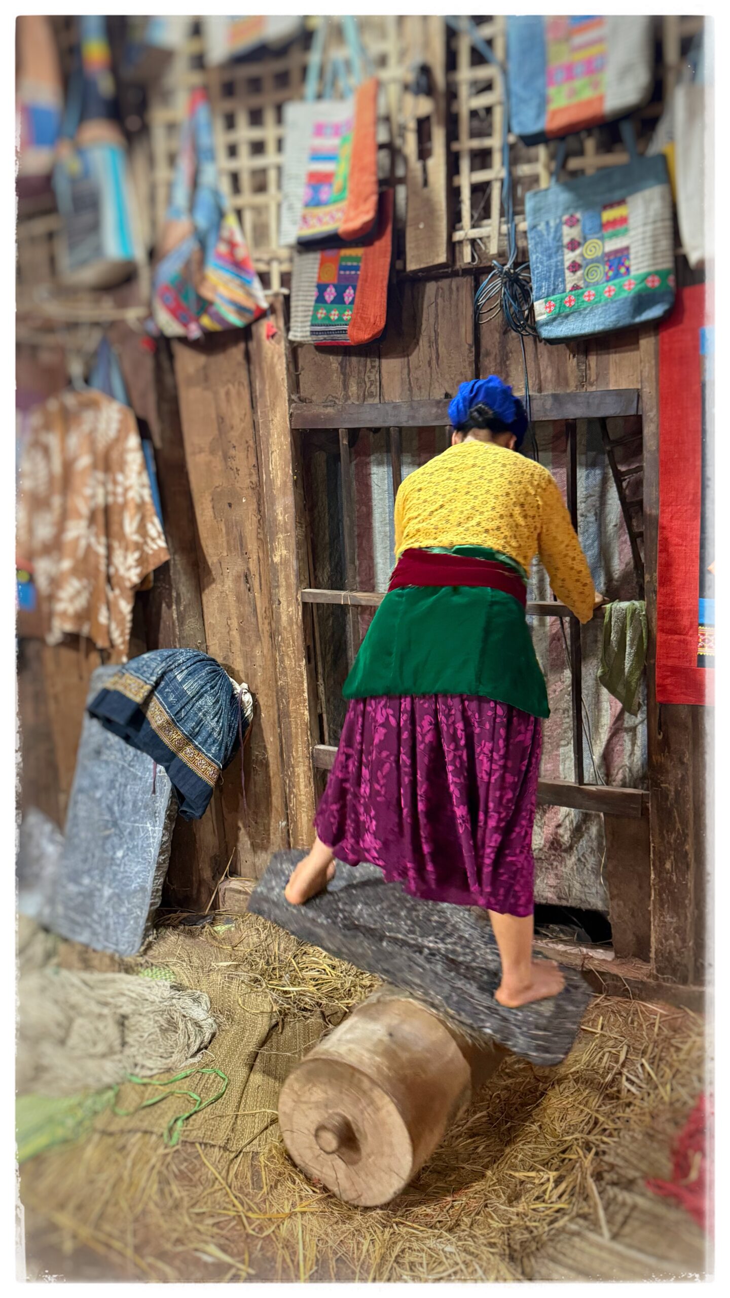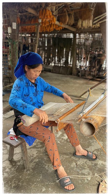 Nous reprenons la route vers Lùng Tám, où la coopérative de tissage prolonge ce que nous avions découvert à Sa Pa : le travail du chanvre, des teintures naturelles, et la finesse des savoir-faire Hmong