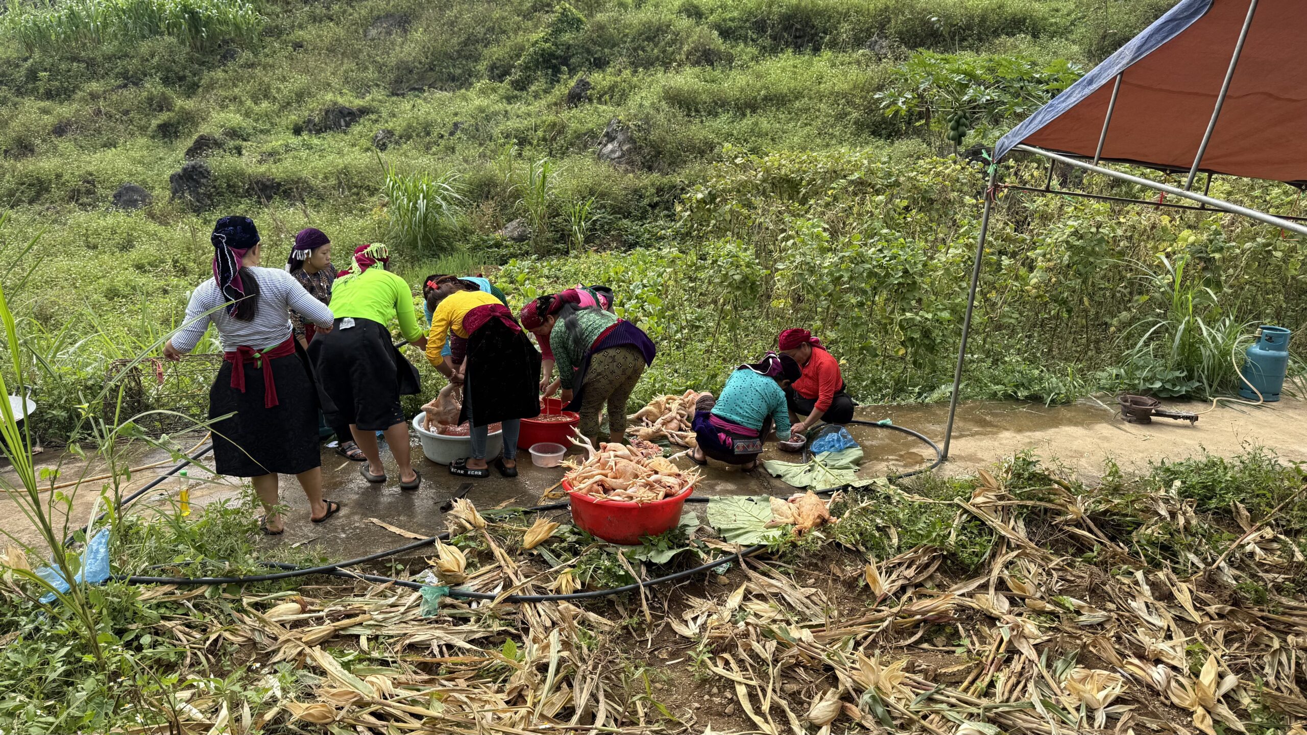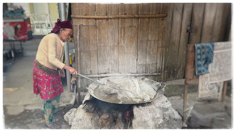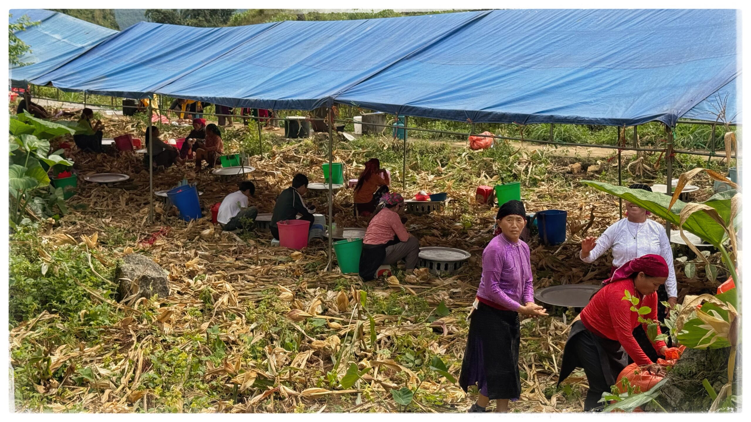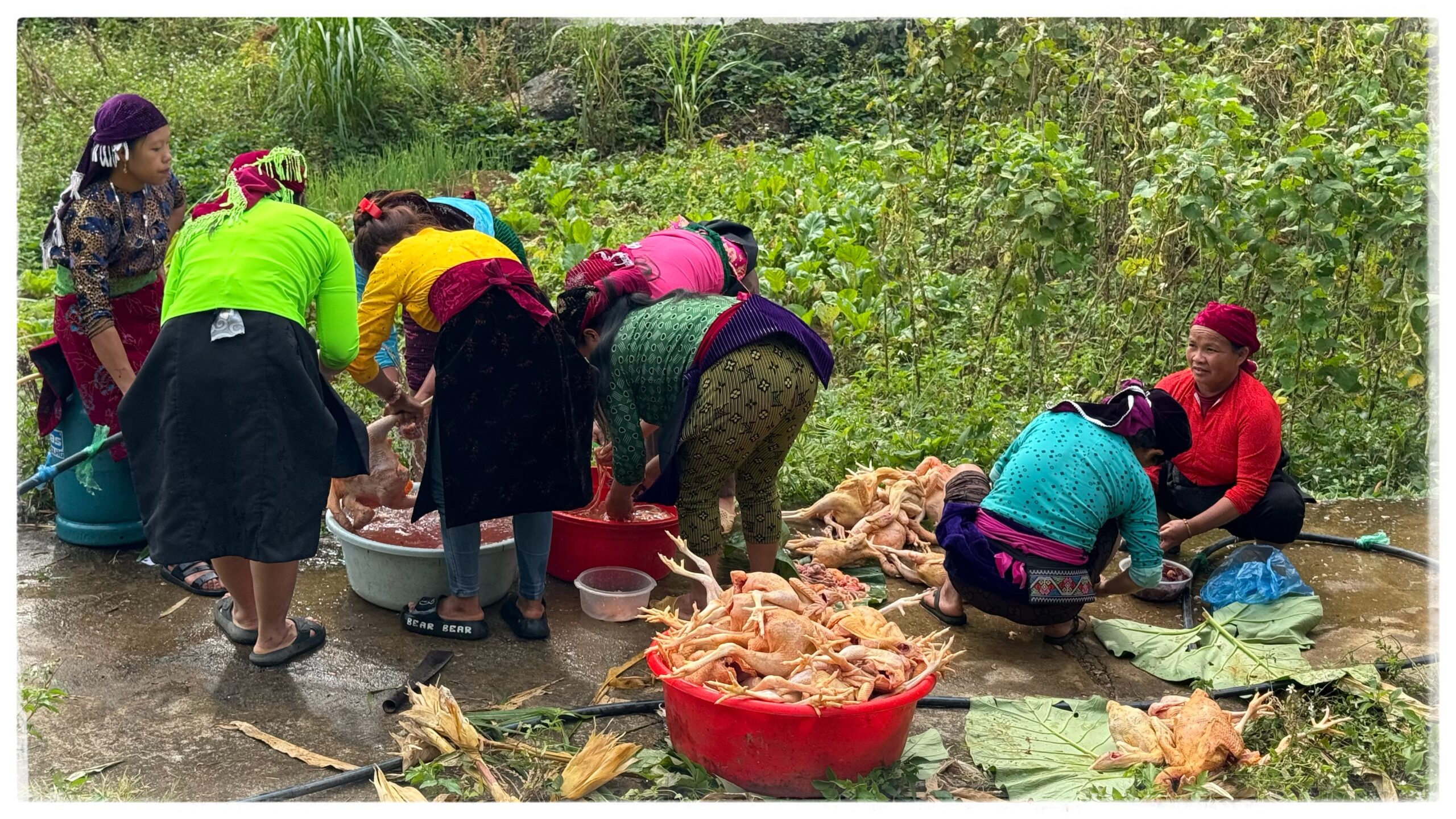 Nous reprenons la route vers Lùng Tám, où la coopérative de tissage prolonge ce que nous avions découvert à Sa Pa : le travail du chanvre, des teintures naturelles, et la finesse des savoir-faire Hmong