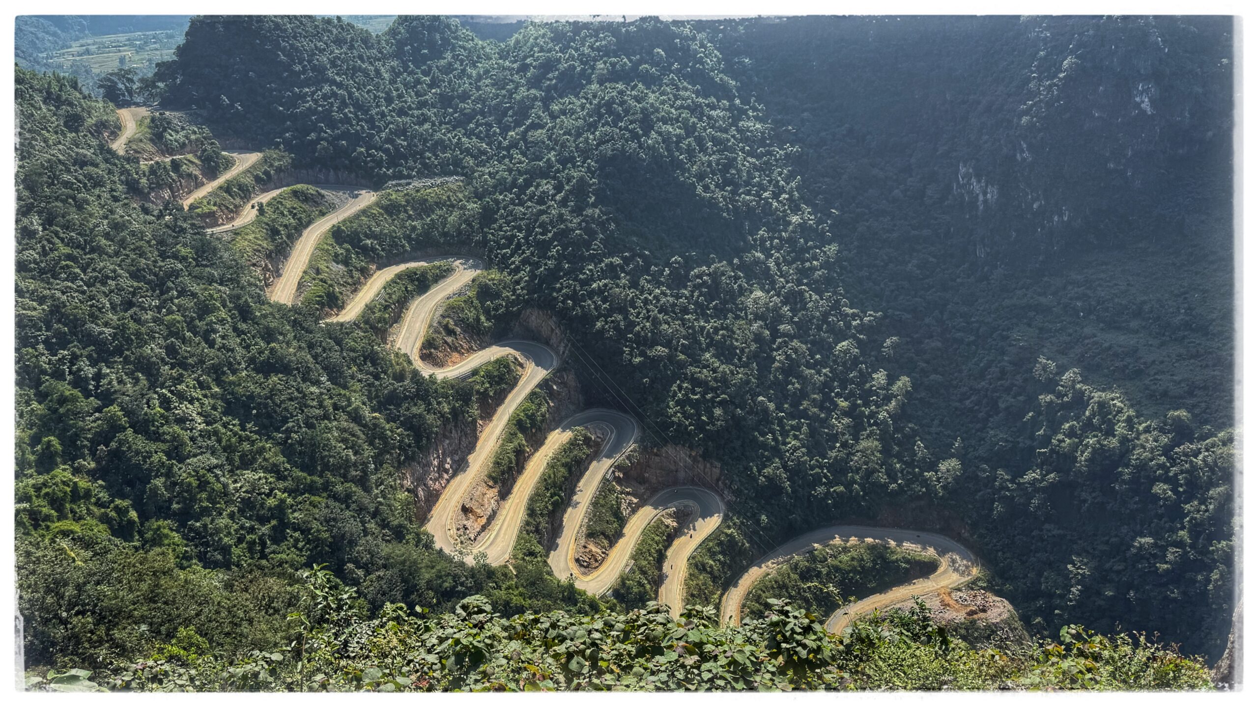 Ce matin, départ de Bao Lac pour Cao Bang, un col particulier était prévu, celui dont personne ne se rappelle le nom mais que tous se rappellent comme le col des 14 virages … (col de Me Pia ou Khau Coc Cha)