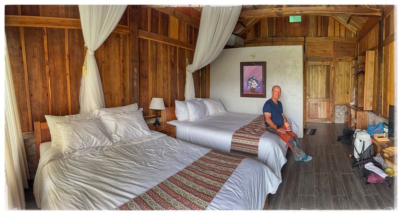 Plus tard nous voilà dans un hôtel magnifique… 17.- la nuit pour les 2 avec petit déjeuner, avec un délicieux poulet à la sauce fruits de la passion (pour 3,60 chacun) … difficile de faire mieux 😃