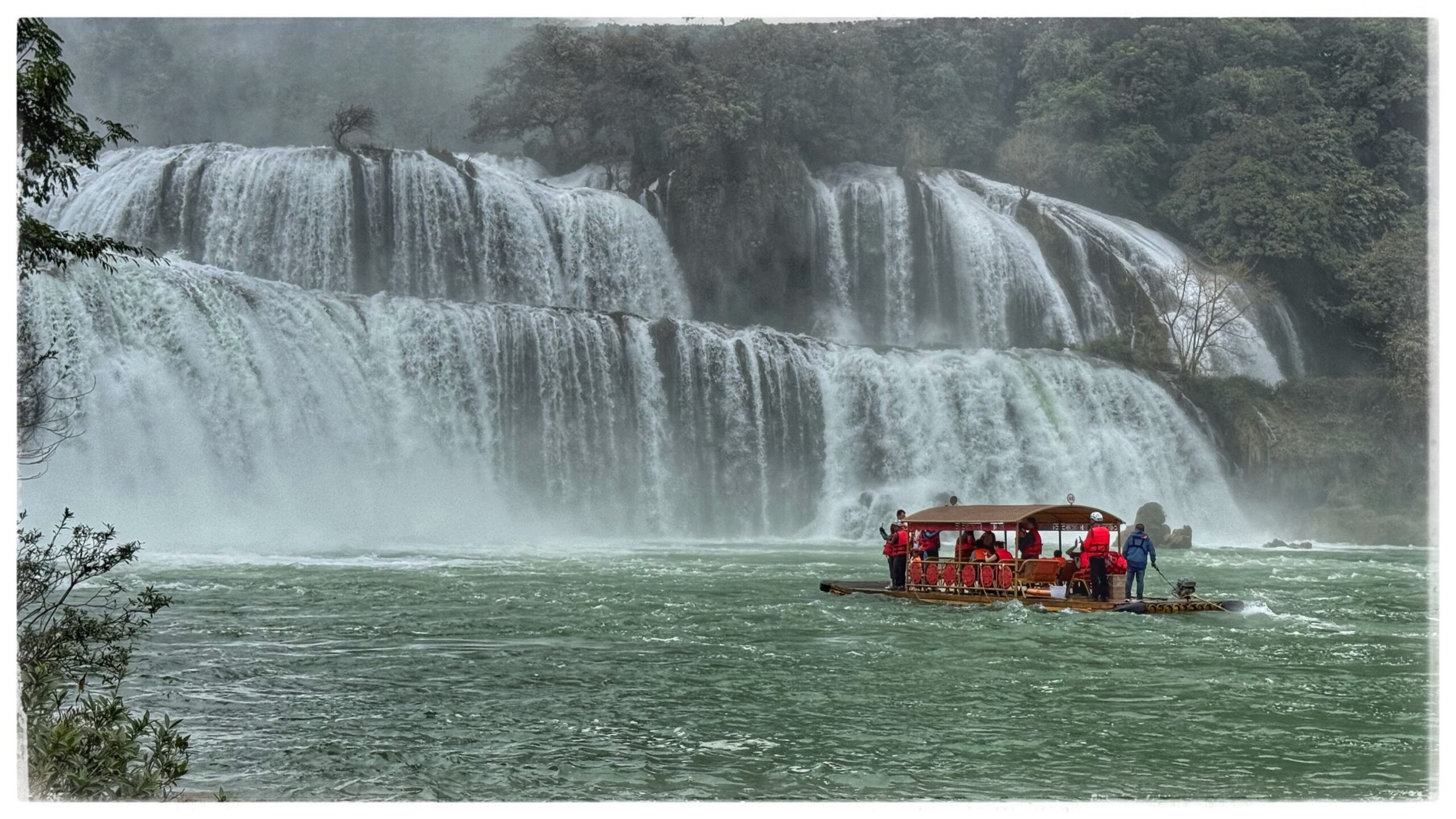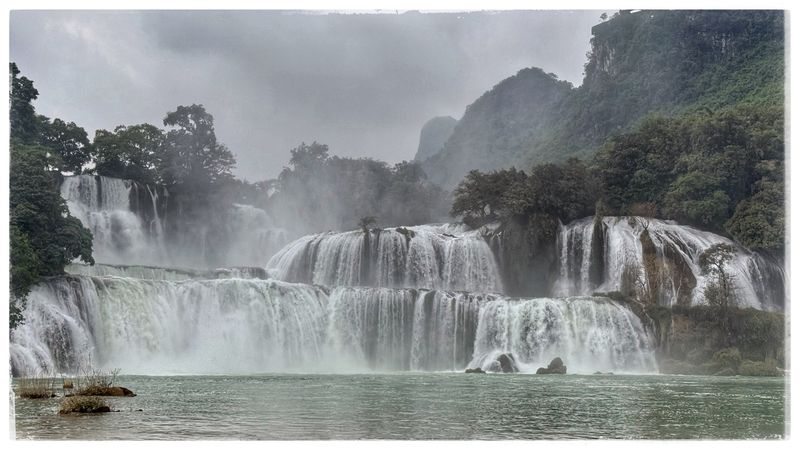 C’est le plus grand ensemble de cascades du Vietnam et l’une des plus vastes d’Asie. Des radeaux de bambou s’approchent lentement du rideau d’eau et croisent ceux de la Chine.