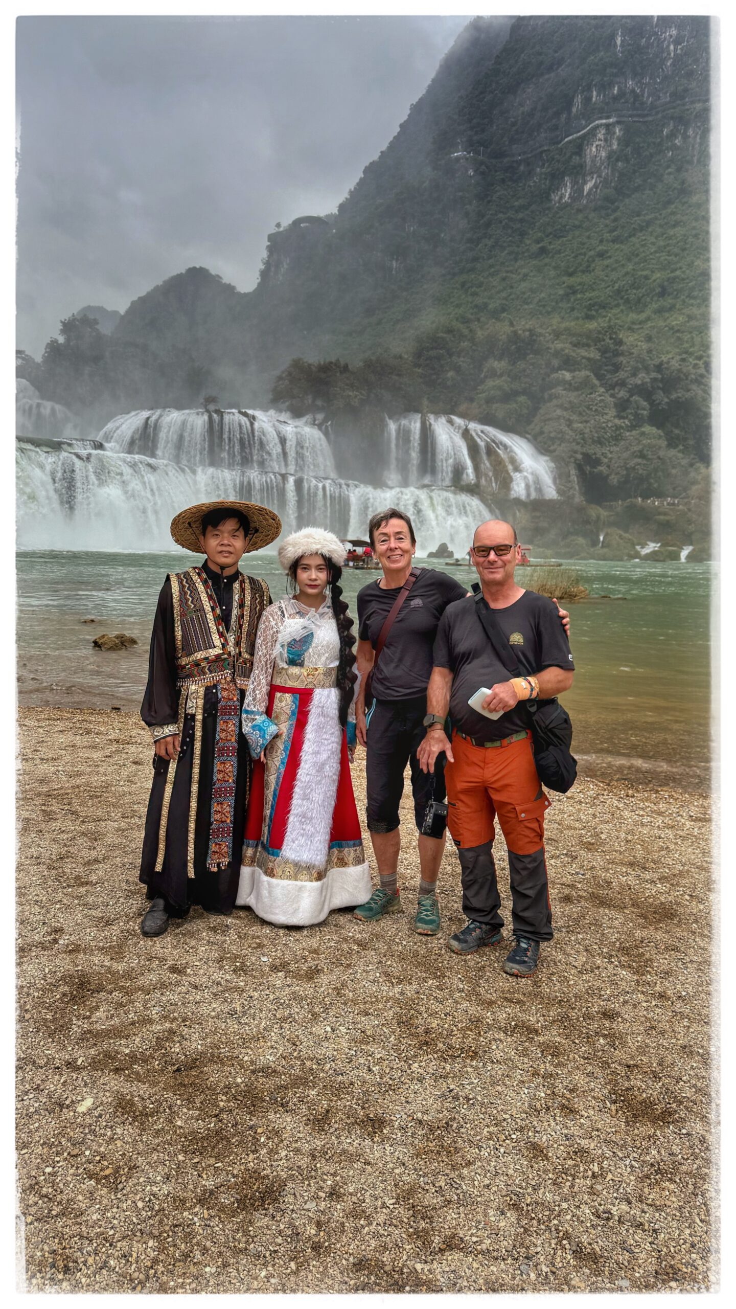 … cela est certain et même les gens du coin nous disent de nous arrêter… D’ailleurs, depuis notre arrivée à Ban Gioc hier, nos montres indiquaient des heures différentes (+ 1 heure pour Alain qui était bloqué sur le fuseau horaire de Pékin) les GPS pour la navigation étaient complètement à la rue … On ne comprenait pas ce qu’il se passait…