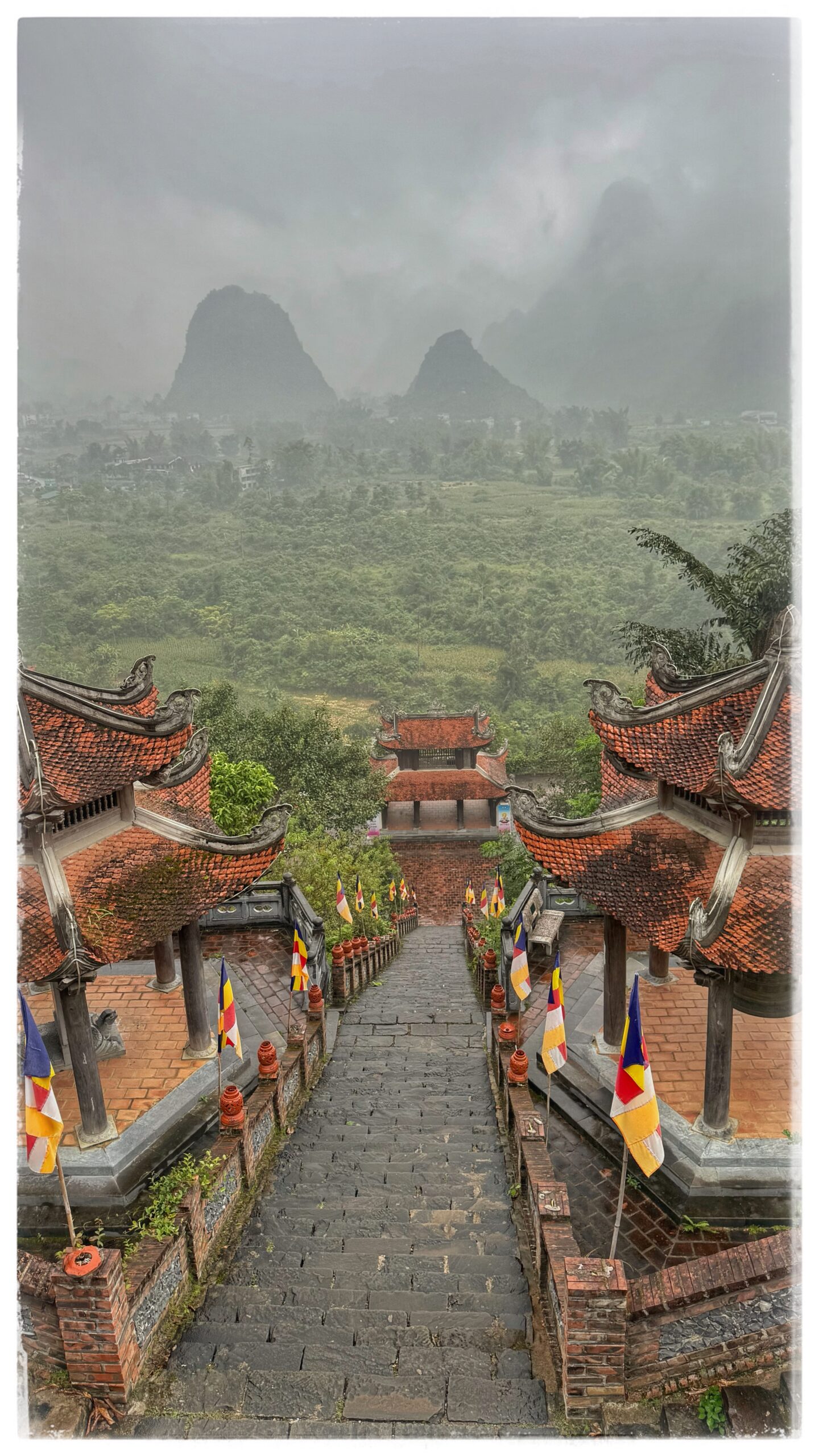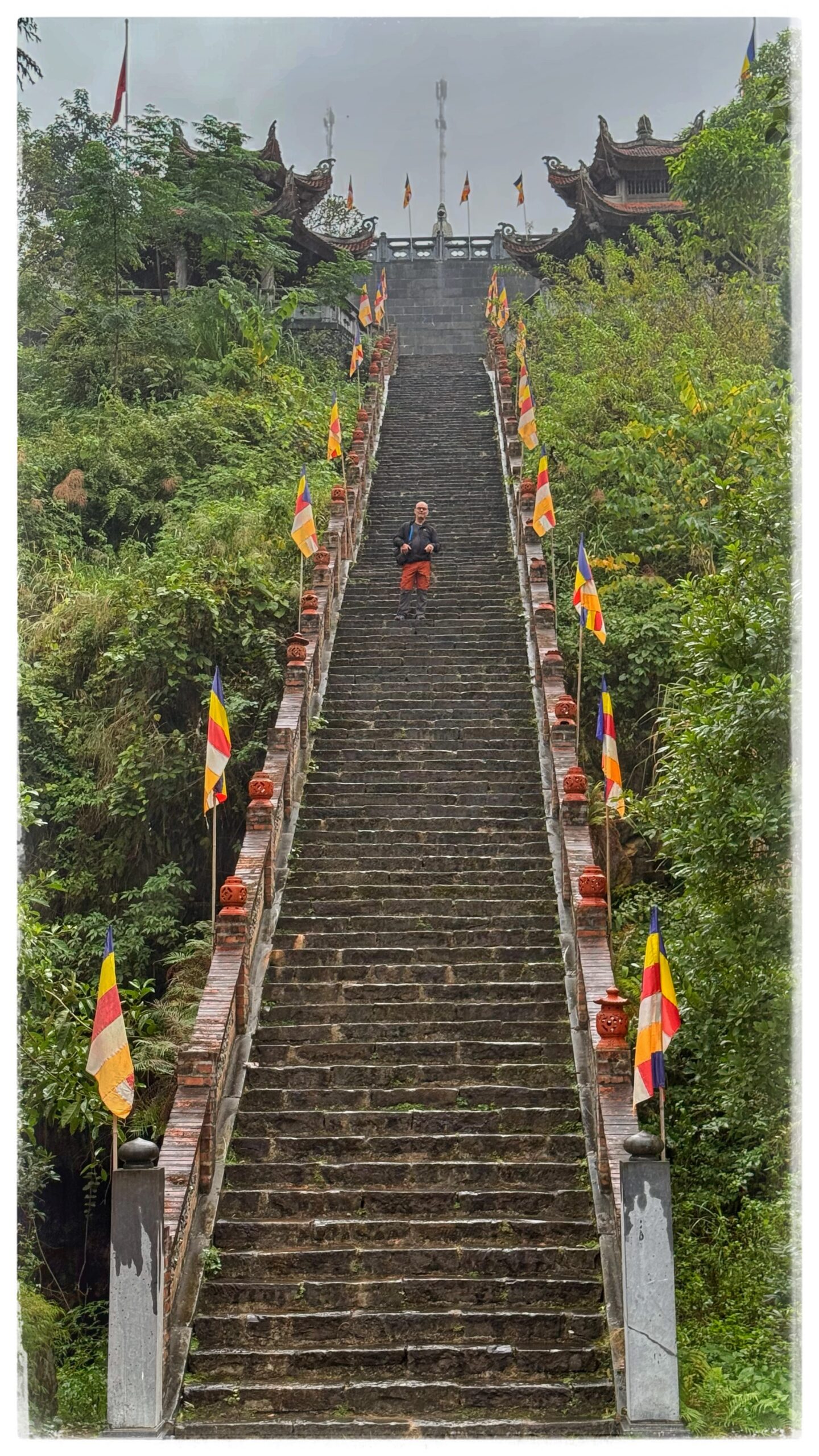 - des escaliers bordés de drapeaux bouddhistes,