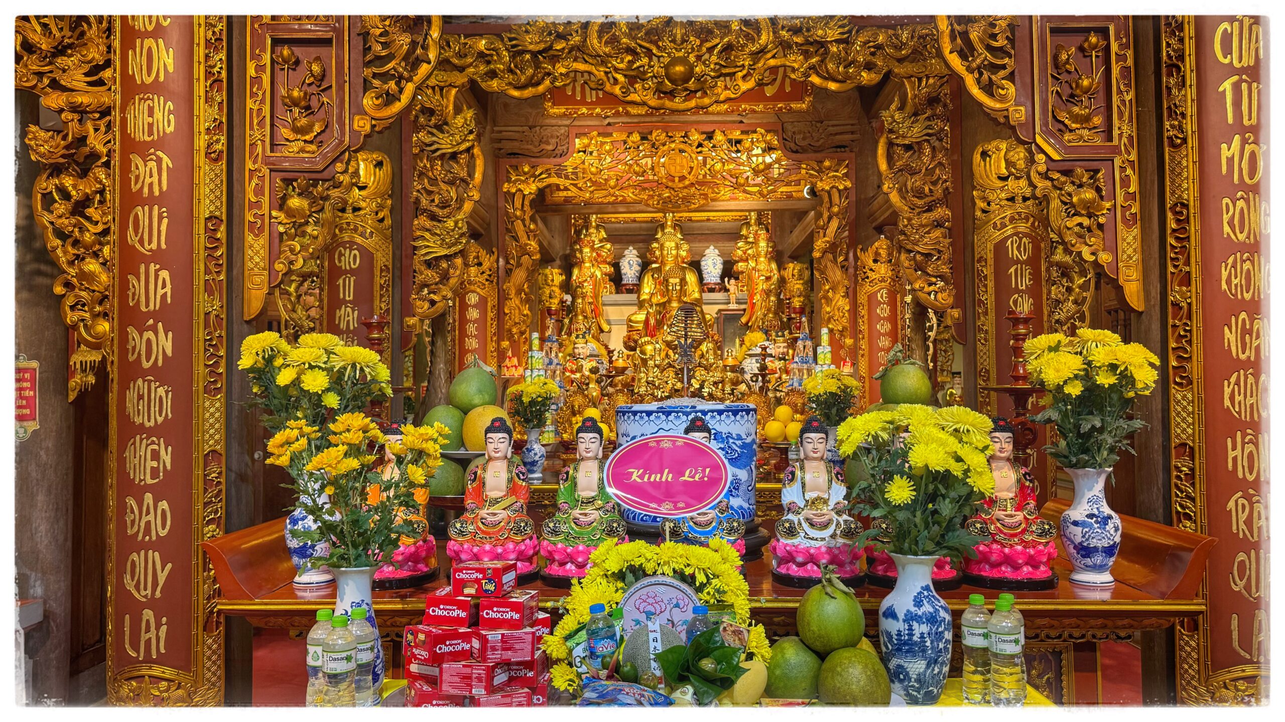 - un sanctuaire principal orné de statues de Bouddha dorées.