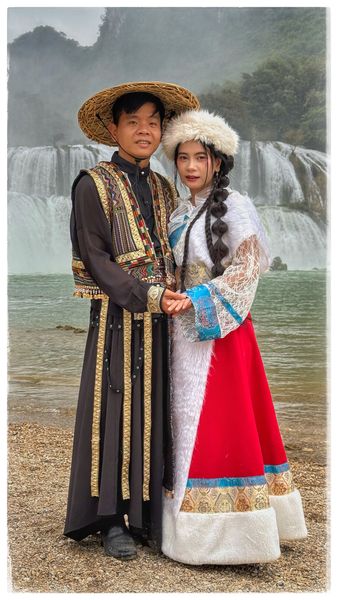 Nous rencontrons un jeune couple de Hmongs en habits traditionnels.