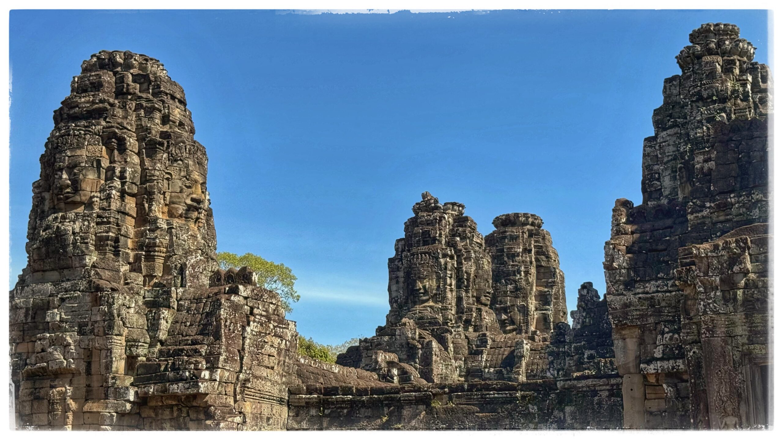 dont chacune porte 4 visages géants, regardant les quatre directions.