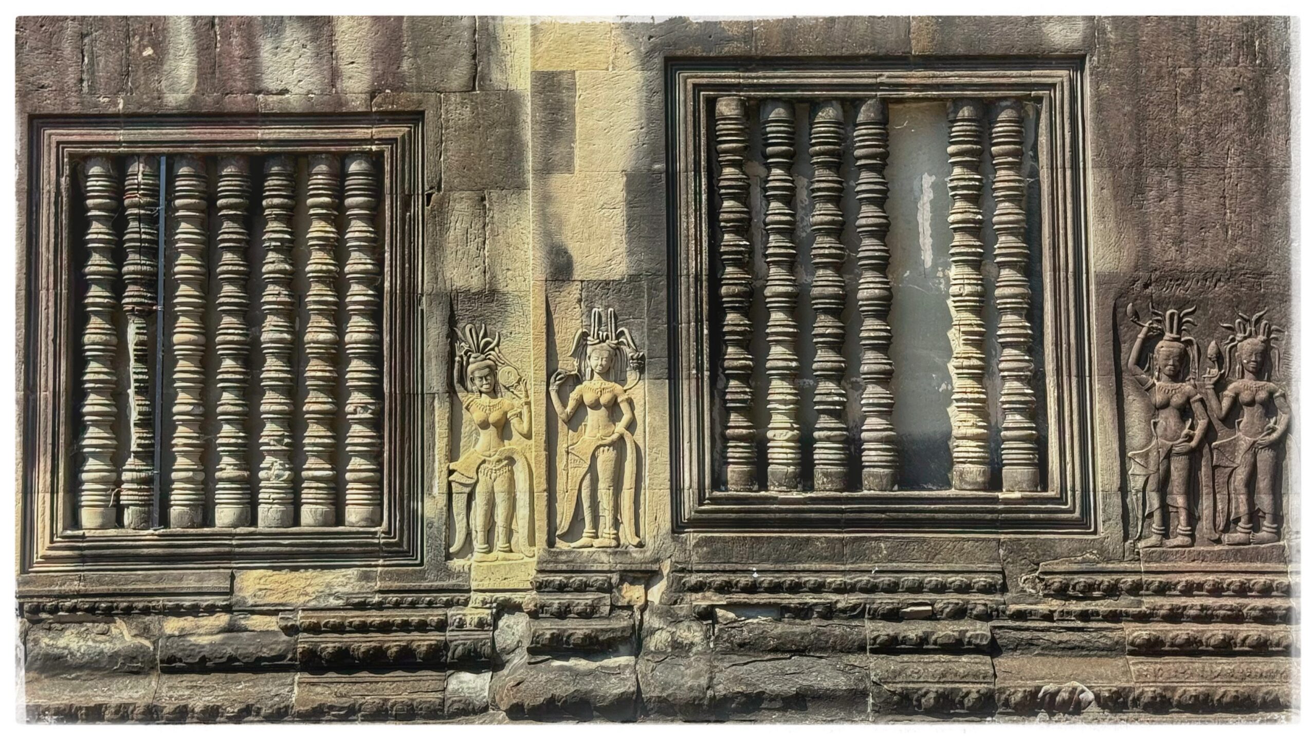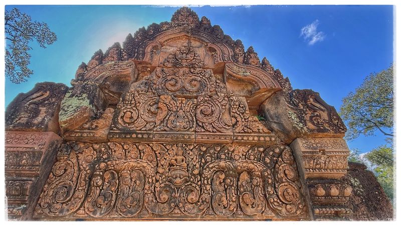 si délicats que les archéologues du XIXe siècle ont imaginé que seules des mains féminines pouvaient produire une telle finesse dans une pierre de grès rose.
