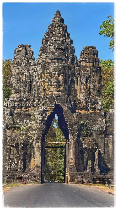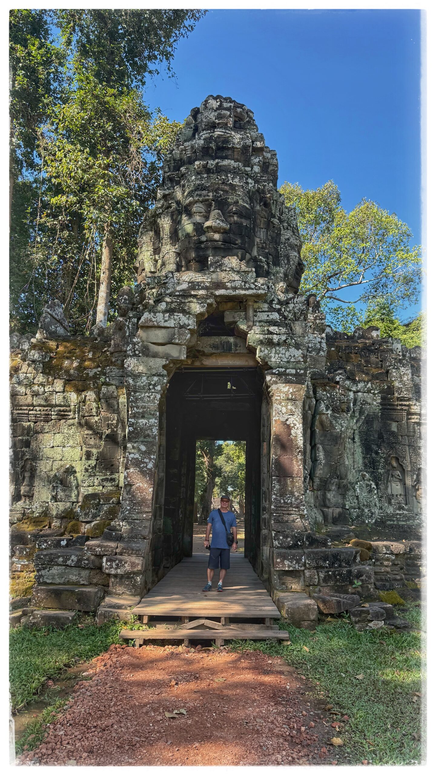 De style Bayon (visages sur les 4 faces) c’est la porte d’entrée du monastère bouddhiste. Cette porte donne directement sur Srah Srang