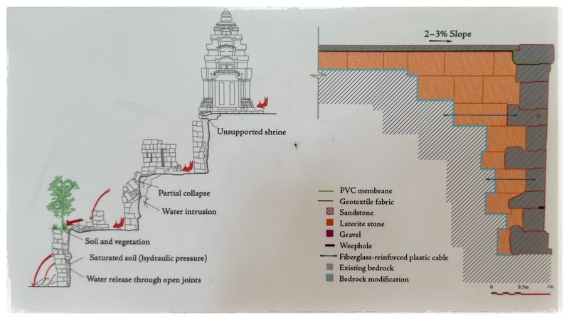 L’eau s’infiltrant entre les blocs de pierre précipite le démantèlement de l’édifice