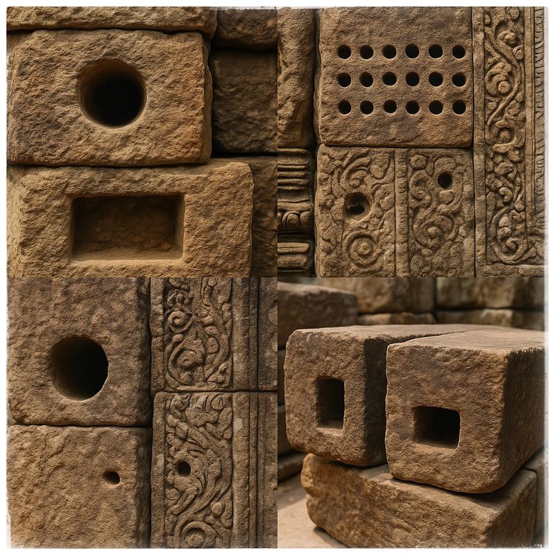 - Trous carrés/rectangulaires sont pour l’assemblage et la stabilité des blocs.