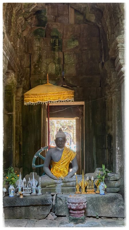 C’est aussi l’un des rares temples d’Angkor toujours en activité religieuse,