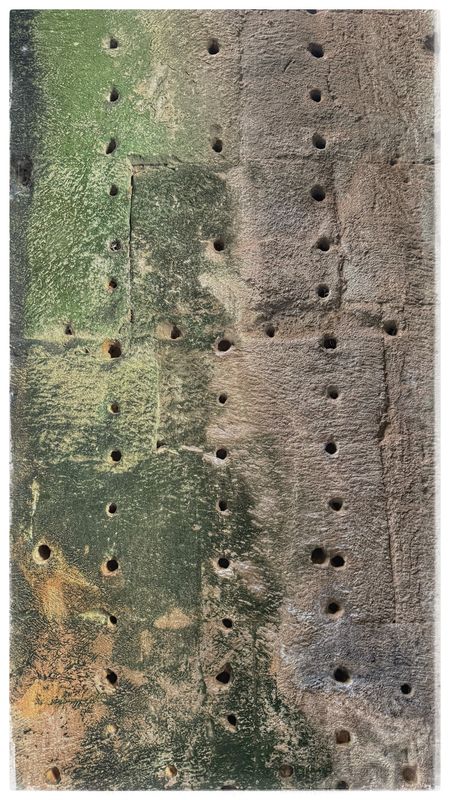 - Trous profonds dans des pierres cassées sont des renforts métalliques disparus.