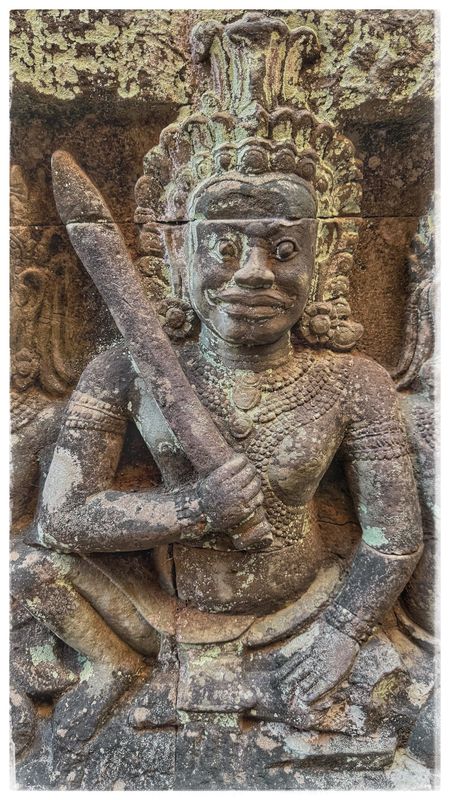 Selon la légende khmère, un roi aurait contracté la lèpre après un combat spirituel. L’ancienne statue étant couverte de taches de lichen, elle semblait malade.
